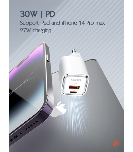 شارژر دیواری 30 وات Ldnio مدل A2317C یک شارژر سریع و کارآمد با طراحی مدرن و ابعاد جمعوجور است که برای شارژ همزمان دو دستگاه مختلف مناسب میباشد. این شارژر با پشتیبانی از فناوریهای PD و QC3.0، توانایی ارائه حداکثر توان خروجی 30 وات را دارد و برای شارژ انواع گوشیهای هوشمند، تبلتها و حتی لپتاپهای سبک مناسب است.