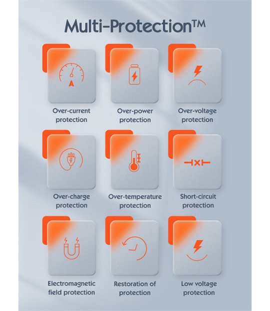 ایمنی چندگانه: دارای سیستمهای حفاظتی برای جلوگیری از افزایش دما، اتصال کوتاه و ولتاژ بیش از حد، که عمر باتری دستگاههای شما را افزایش میدهد.